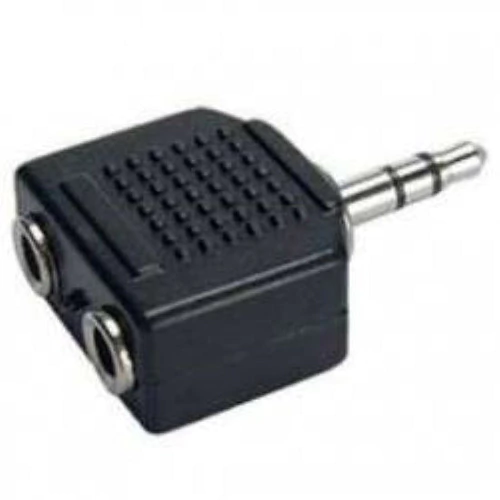Dispositivo que conecta 2 plug p2 macho Estéreo para uma conexão P2 Macho Estéreo, também pode ser usado de maneira inversa.