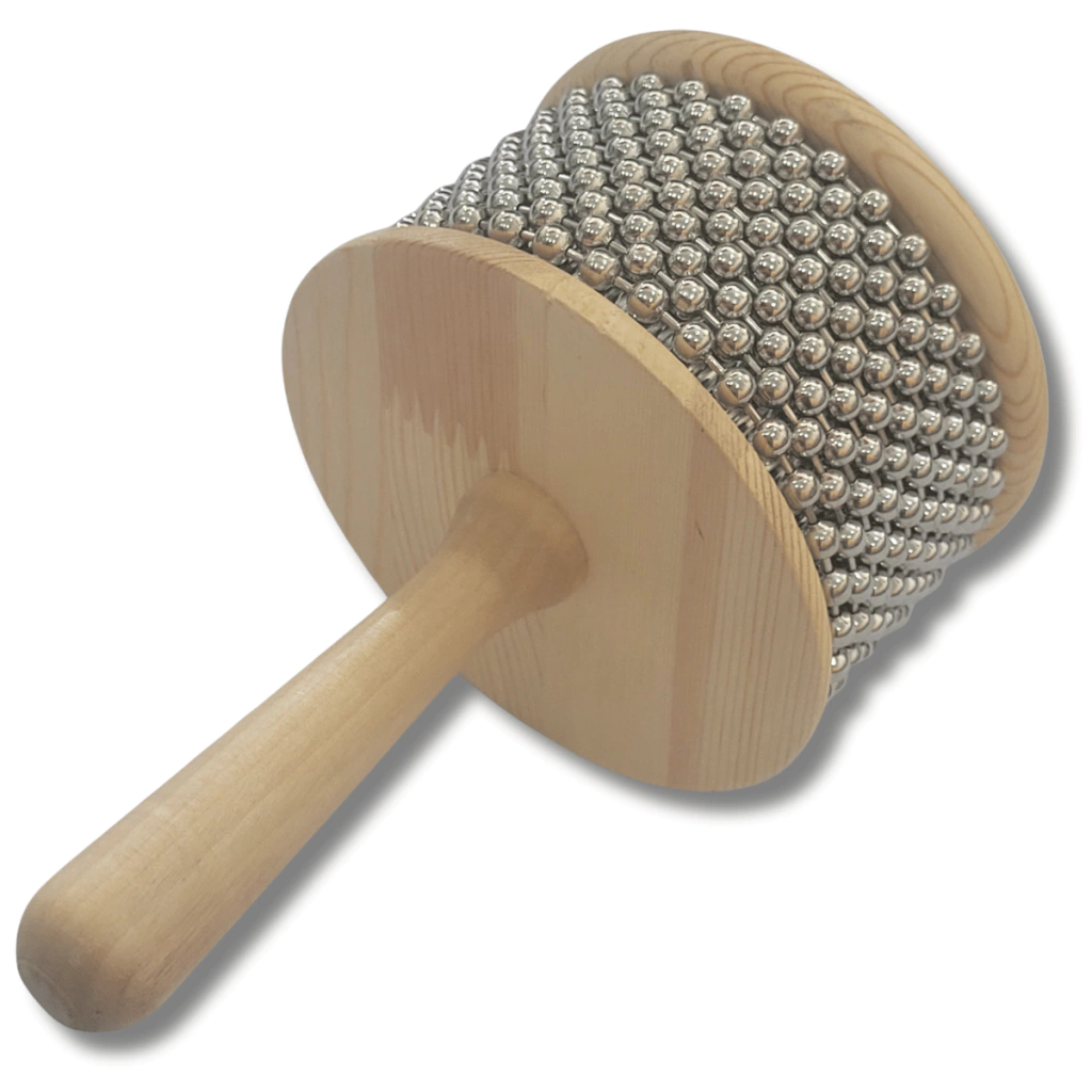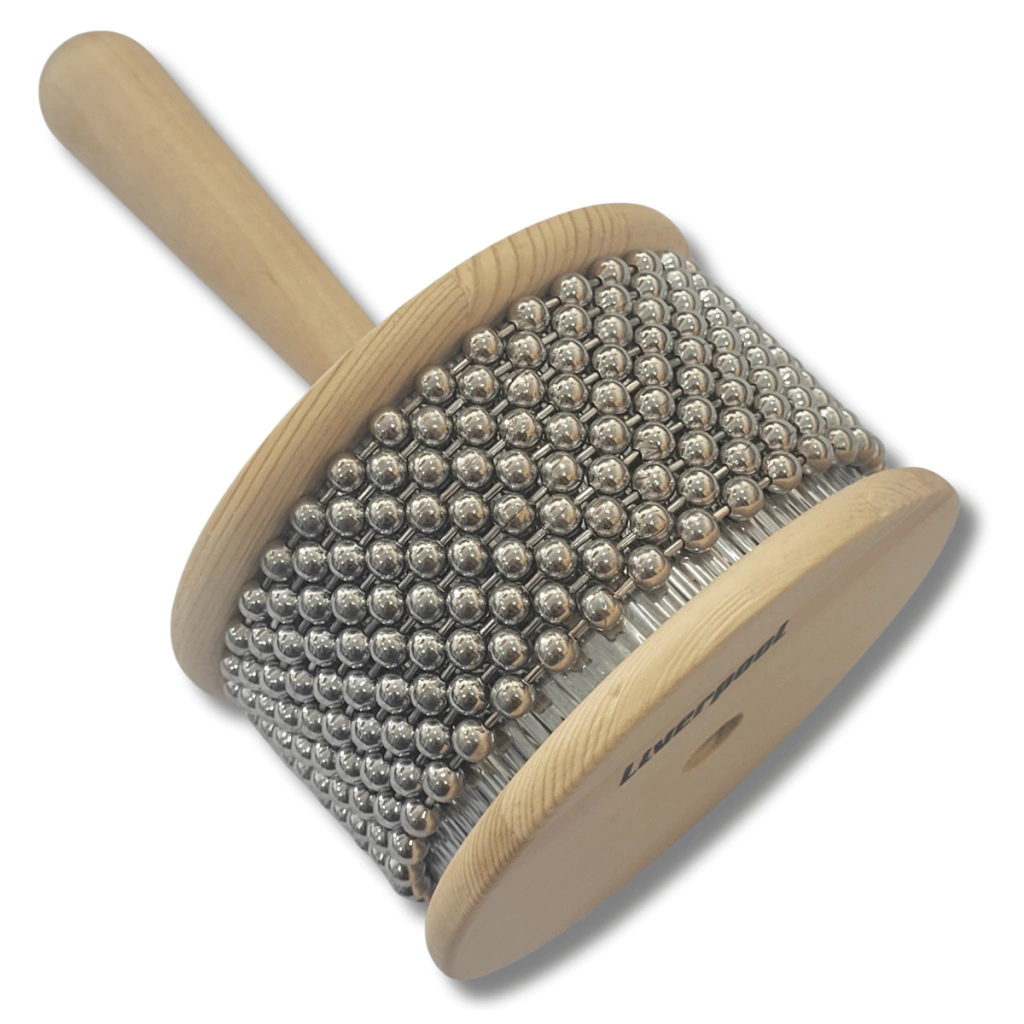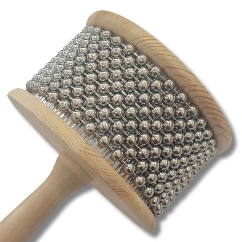 Traz 10 fileiras de esferas em aço, em contato com aço texturizado inoxidável.