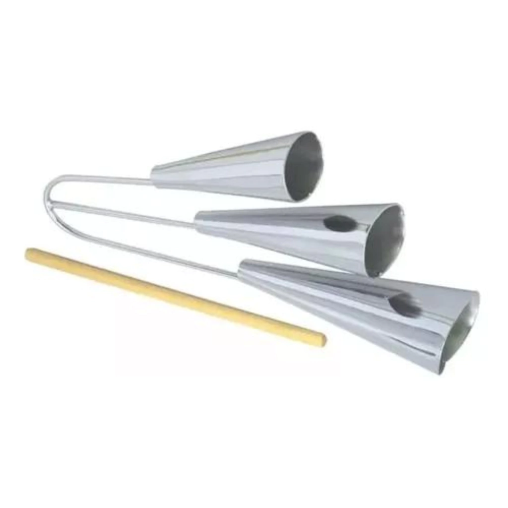 Agogo Triplo Grande Aço Cromado com Baqueta Spanking
