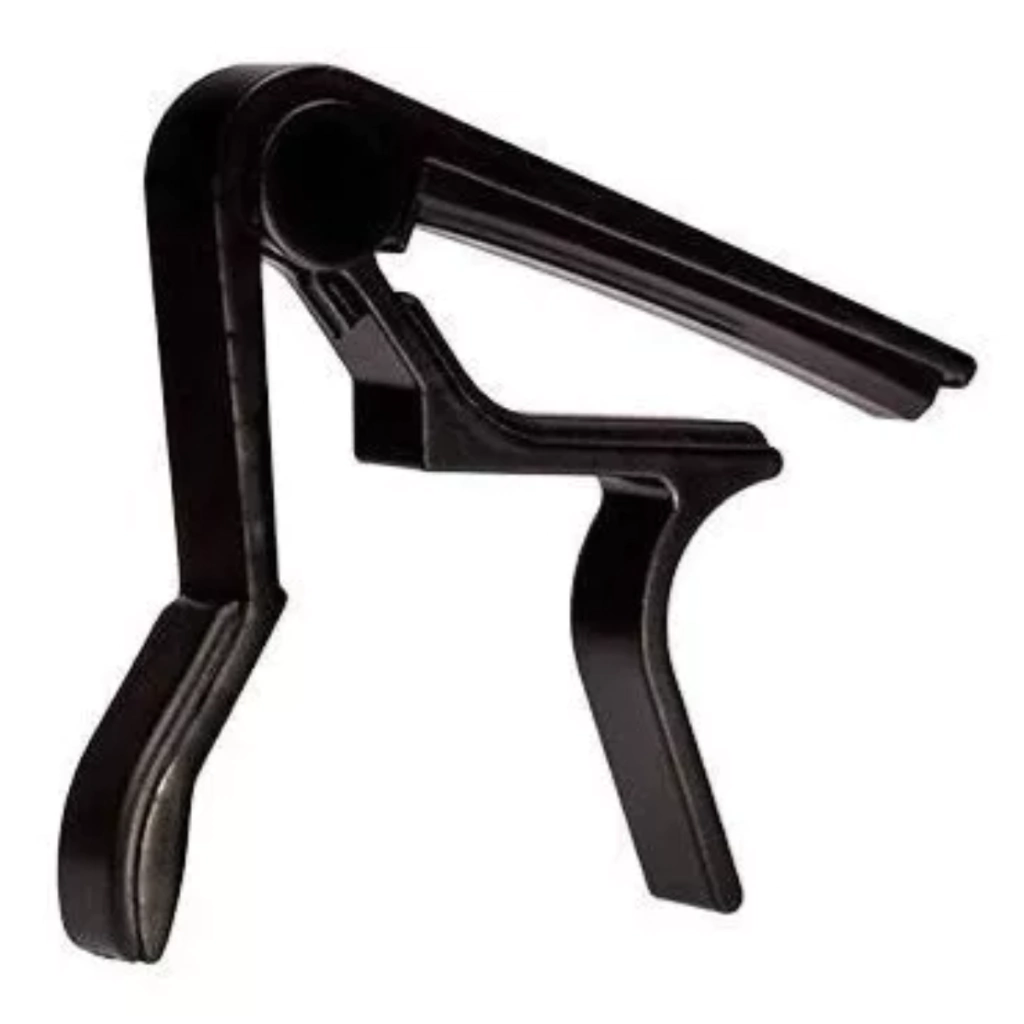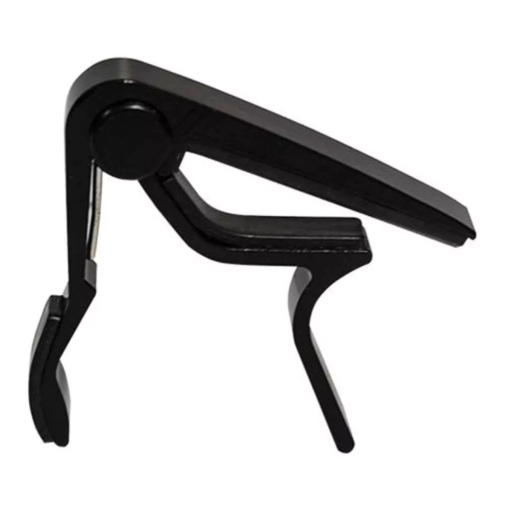 Capotraste de metal para uso em violão elétrico, acústico, com cordas de aço ou nylon ou pode ser usado também em guitarra.