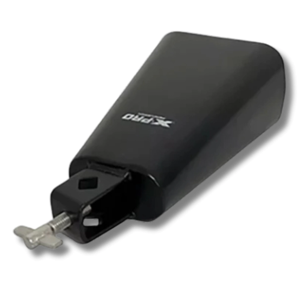 - Pode ser usado com um clamp para fixar no bumbo ou para fixar em estantes;