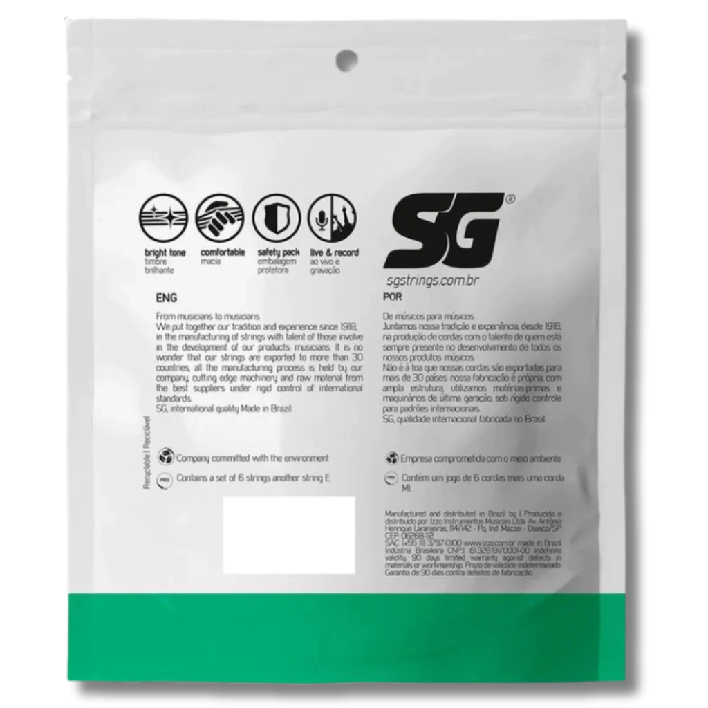 A SG é uma marca da Izzo Instrumentos Musicais, que oferece uma ampla variedade de cordas para instrumentos musicais, como o encordoamento de ukulele. Aproveite as condições de pagamento oferecidas pela loja e faça seu pedido.