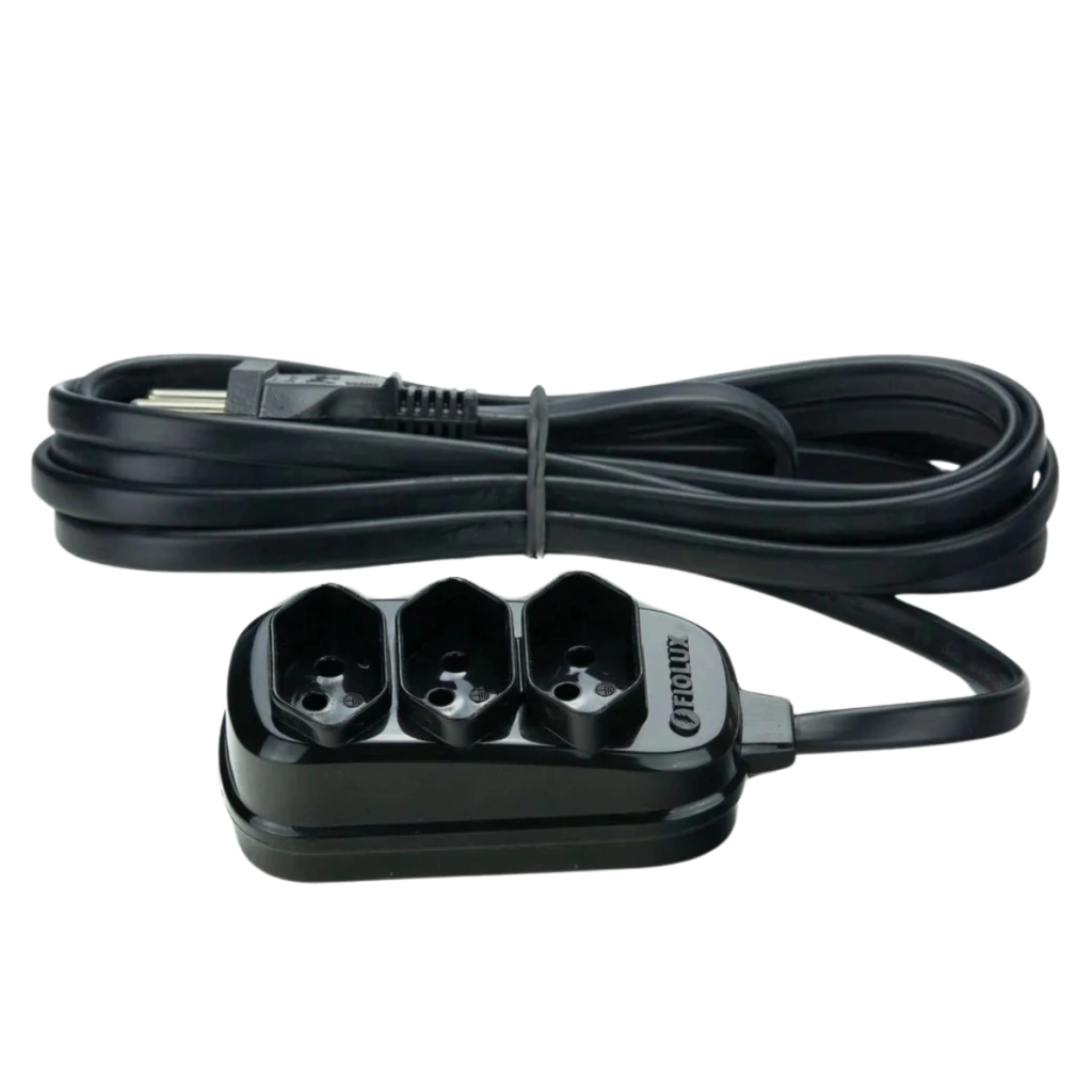 Esta extensão possui três tomadas de energia (2P+T), permitindo que você conecte vários dispositivos simultaneamente.