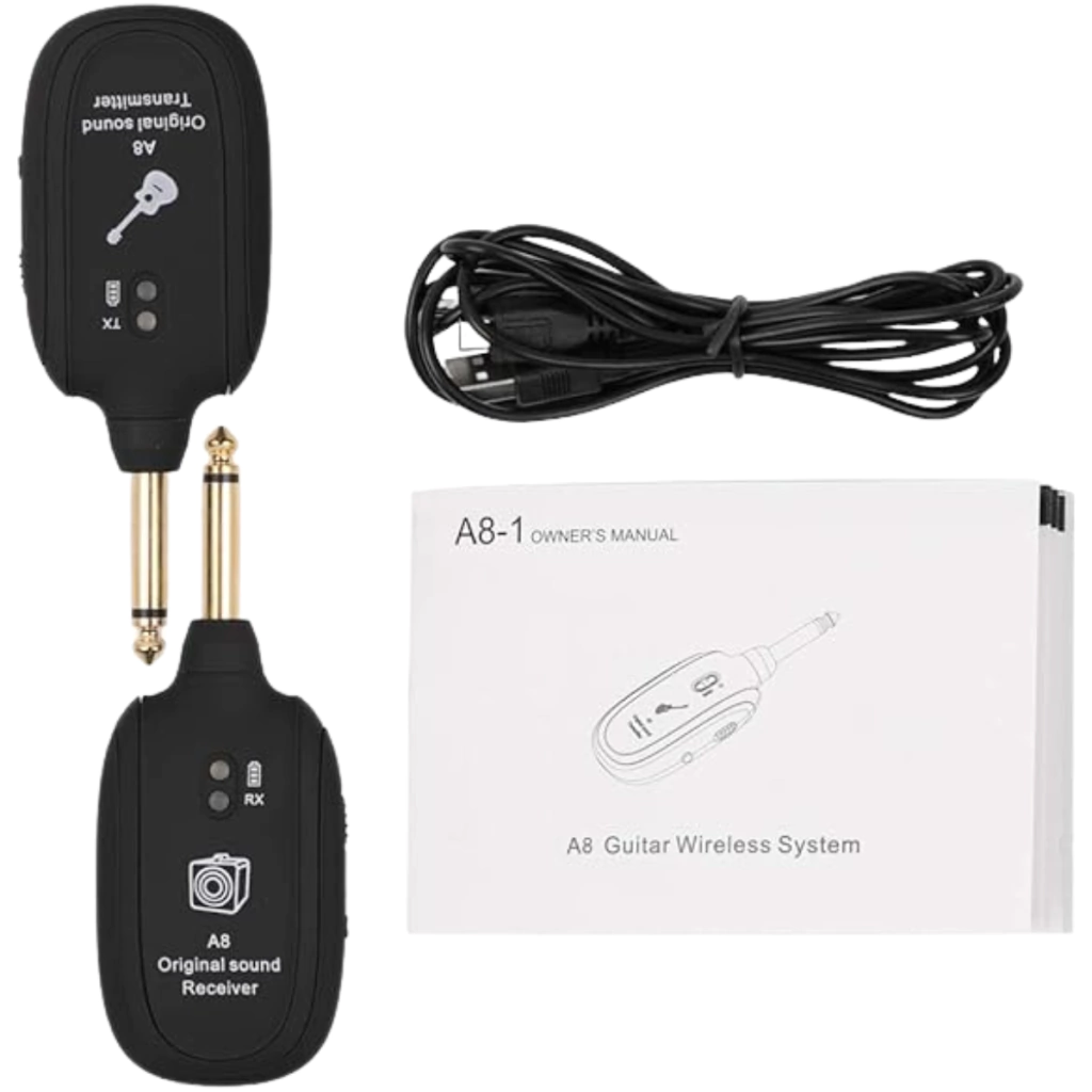 Elimine fios da sua guitarra, violão, baixo. Utilize transmissor de excelente qualidade. Transmissor / Receptor Guitarra Sem Fio Com este adaptador, você poderá utilizar seu instrumento musical sem precisar do cabo ( P10 ).