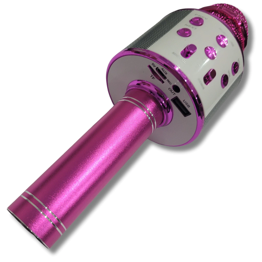 O microfone karaokê conta com uma caixa de som embutida, além de poder sincronizar seu celular ou notebook via Bluetooth e reproduzir um Playback.