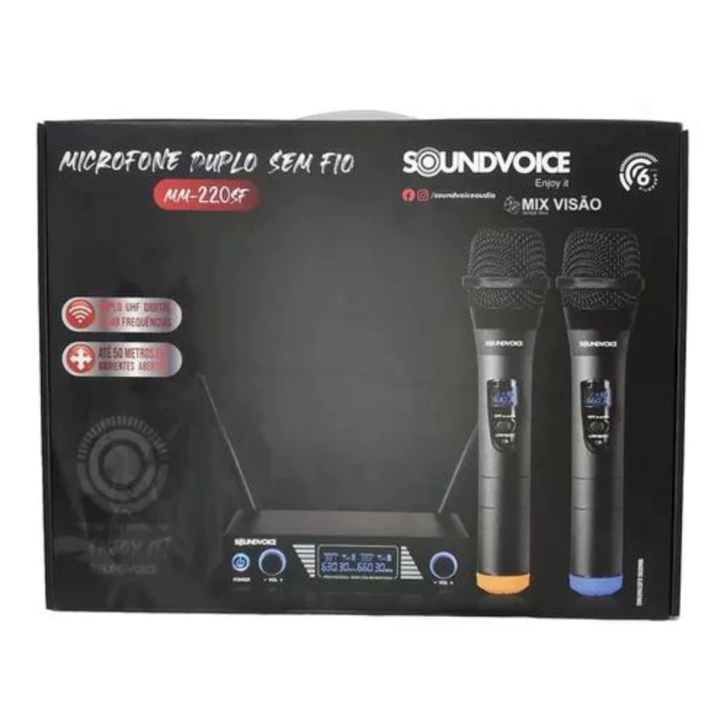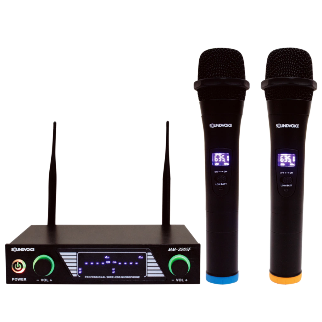 O Microfone Duplo Sem Fio Soundvoice MM-220SF é um sistema de microfones versátil e confiável, projetado para atender às necessidades de músicos, artistas e profissionais de áudio. Este sistema oferece a liberdade de se movimentar e se expressar com clareza, tornando-o ideal para apresentações ao vivo, eventos, gravações em estúdio e muito mais.