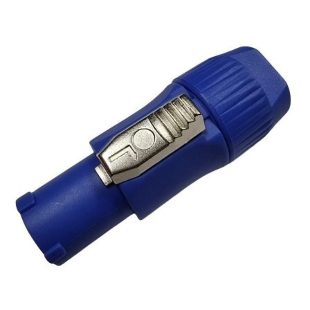 Plug Powercon Macho Linha Entrada Azul Com Reforço Interno
