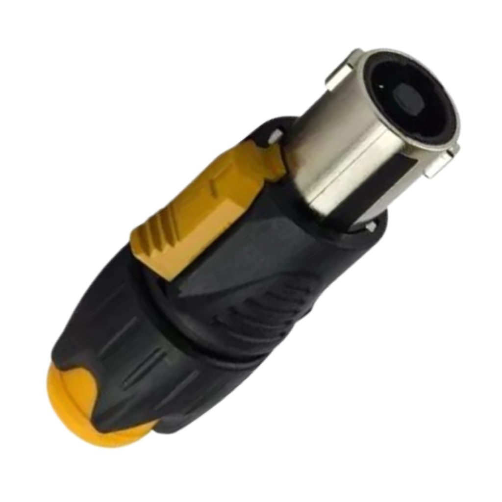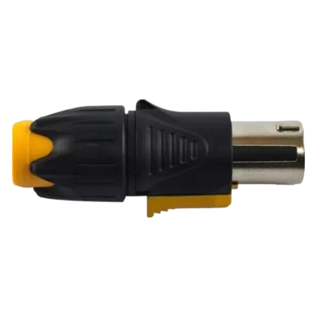 Plug Speakon Macho Com Trava Metal 4 Vias Profissional Preto e Amarelo MXT
