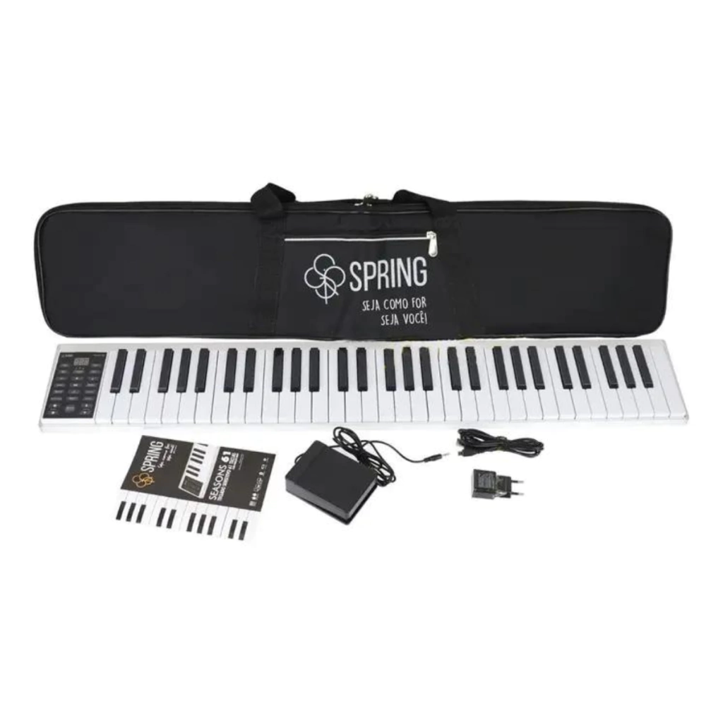 Teclado Controlador Seasons 61 Teclas Sensitivas da marca Spring. Teclado sensitivo, com função MIDI, portátil e com design e estrutura moderna e sofisticada, ideal para quem busca por um teclado controlador de ótima qualidade aliado a custo benefício!