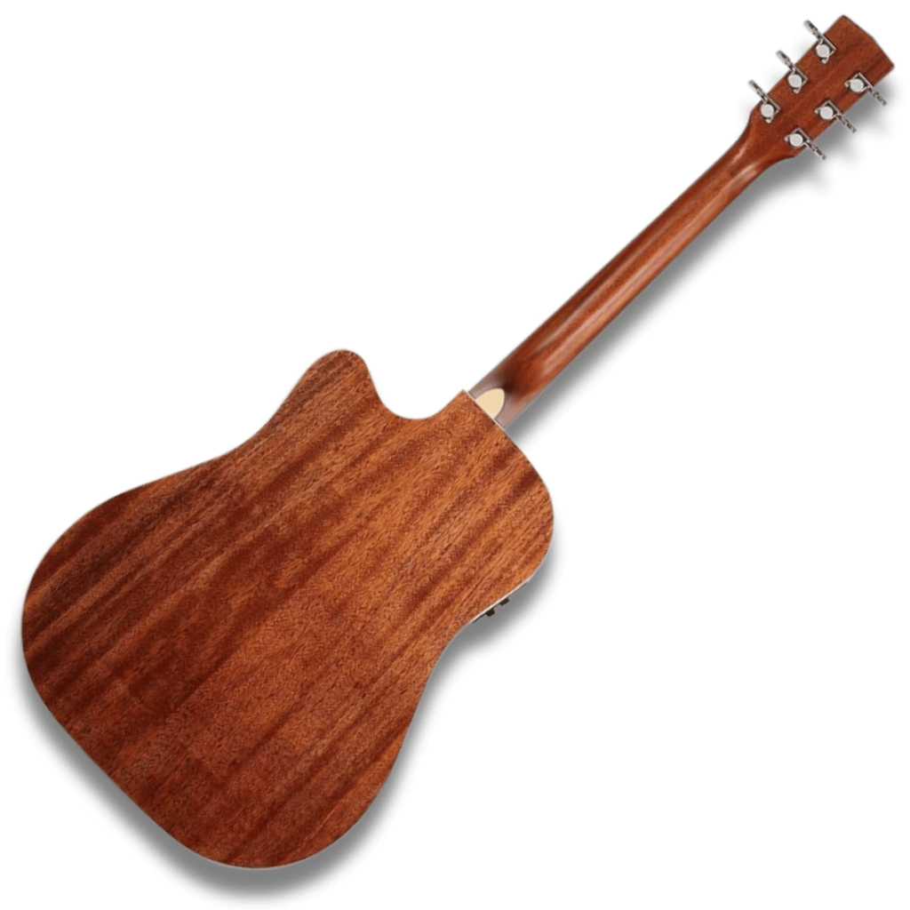 Brilhante, porém natural, com médios fortes e quentes, a amada madeira de mogno tem sido um padrão para fundos e laterais de violões acústicos de alta qualidade por muitas décadas.
